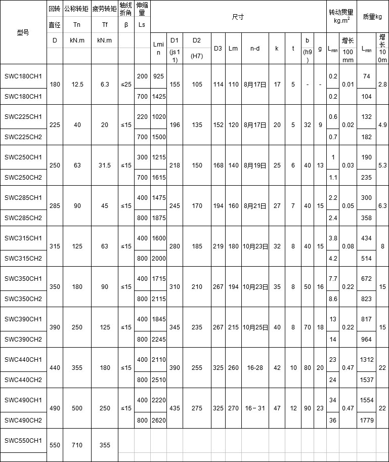 SWC-CH長伸縮焊接式萬向聯軸器基本參數與主要尺寸(JB/T 5513-91) mm