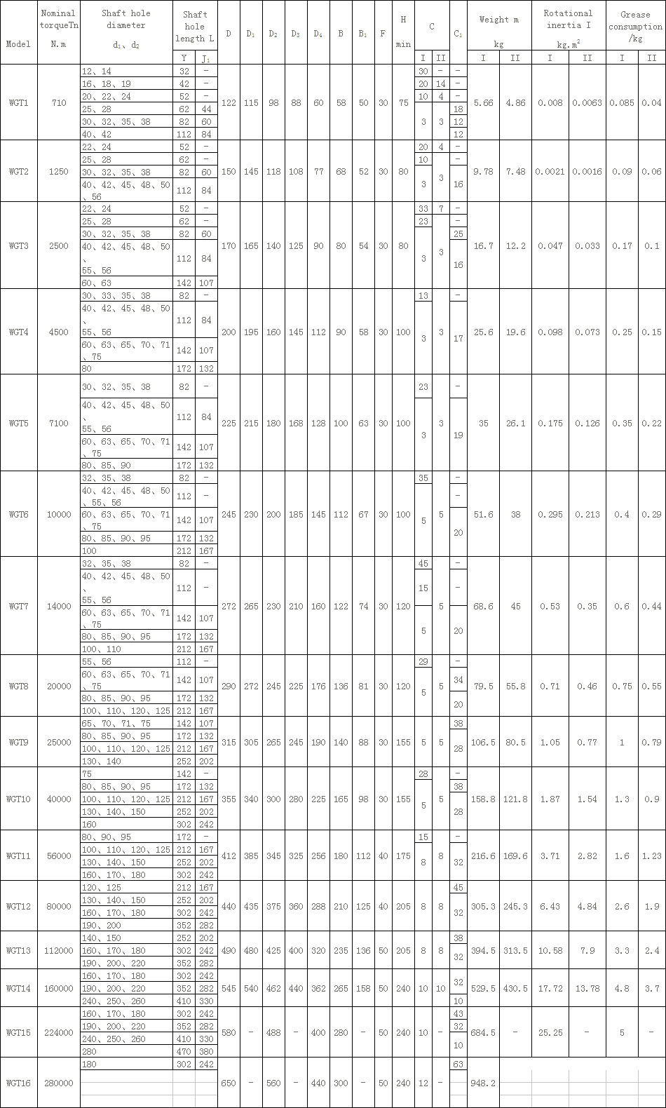 WGT中袖圓筒形齒輪耦合基本參數及主要尺寸:(JB/T 7004-93)mm