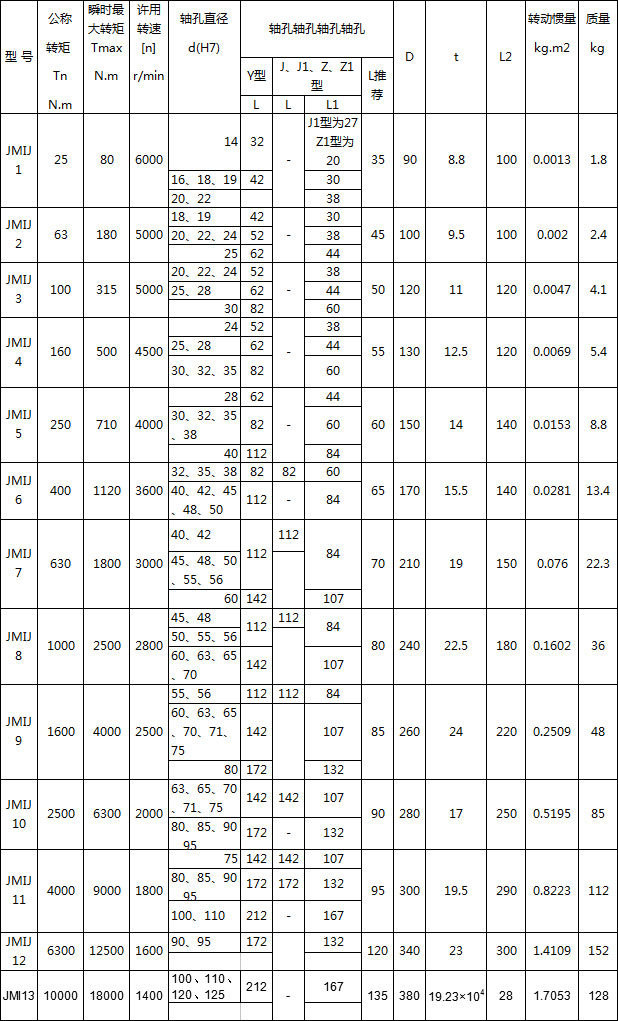 JMIJ膜片聯軸器特點及應用場合:與金屬彈性元件撓性聯軸器相比,具有機械強度高,承載能力大、質量輕結構尺寸小、傳動效率和傳動精度高,裝拆方便等特點。適用于中、高-速、大轉矩軸系傳動。與鼓形齒式聯軸器相比,具有無相對滑動,不需潤滑,使用壽命長、無噪聲、結構簡單等特點.可部分代替鼓形齒式聯輔器。不受溫度和油污影響。具有耐酸、堿,防腐蝕的特點。可用于高溫、低溫和有油、有水和腐蝕介質的工況環境.適用于各種機械裝置載荷變化不大的軸系傳動,通用性強,工業發達國已普遍采用,是我國重點推廣應用的高-性能撓性聯軸囂,高-精度膜片聯軸器可用于高-速工況。膜片聯軸器與齒式聯軸器相比,沒有相對滑動,不需要潤滑、密封,無噪聲,基本不用維修,制造較方便,可部分代替齒式聯軸器。膜片聯軸器在國際上工業發達國應用已很普遍,在實際應用中一般采用接中間軸型,以提-高兩軸線偏移補償性能。