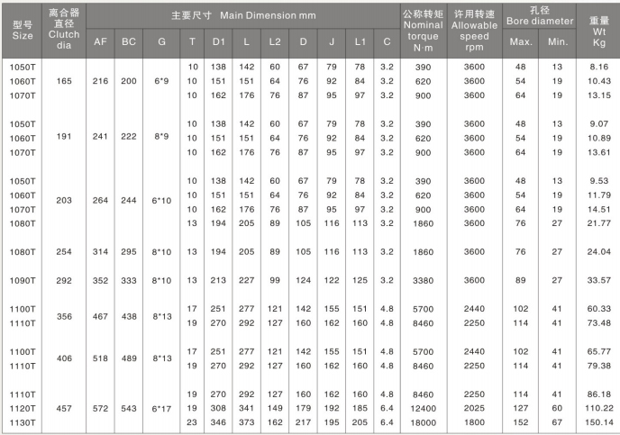 福克T90聯軸器的參數及主要尺寸